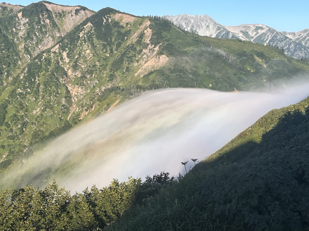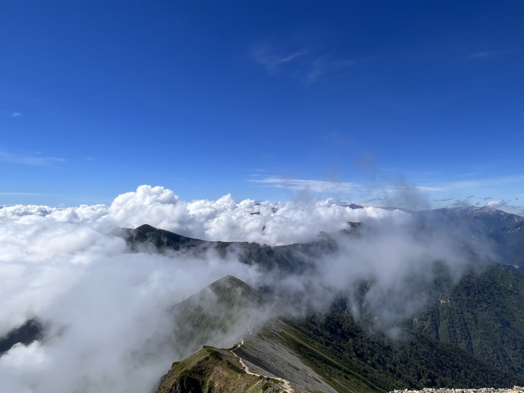 キレットに入ると、目の前に広がる岩場と切れ落ちた崖が僕を現実に引き戻した。慎重に一歩ずつ進むたびに、自然の圧倒的な力を感じる。恐怖と緊張感が混じり合う中、それでも僕の中には「これを超えたい」という冒険心が確かにあった。