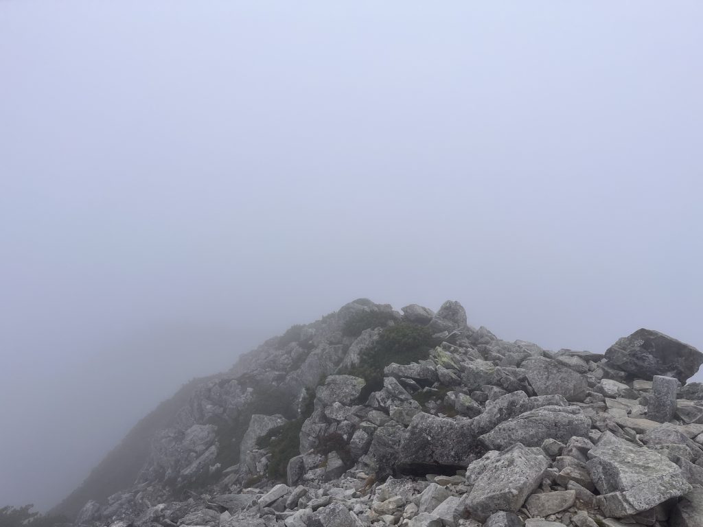 登り始めは順調だった。太郎小屋を越えたあたりまで、天気は僕を歓迎してくれているようだった。ペースも悪くない。しかし、山というものは気まぐれだ。北ノ俣岳に差し掛かった頃、空気が一変した。辺りはガスで覆われ、風が強く吹きつけてくる。黒部五郎岳のピークに着いた時には、すでに眺望は霧の中に消え失せていた。目の前に広がるはずの景色は何も見えず、あるのは足元の岩がゴロゴロと転がる山肌だけ。黒部五郎という名の由来だけが、ここに確かに存在している。