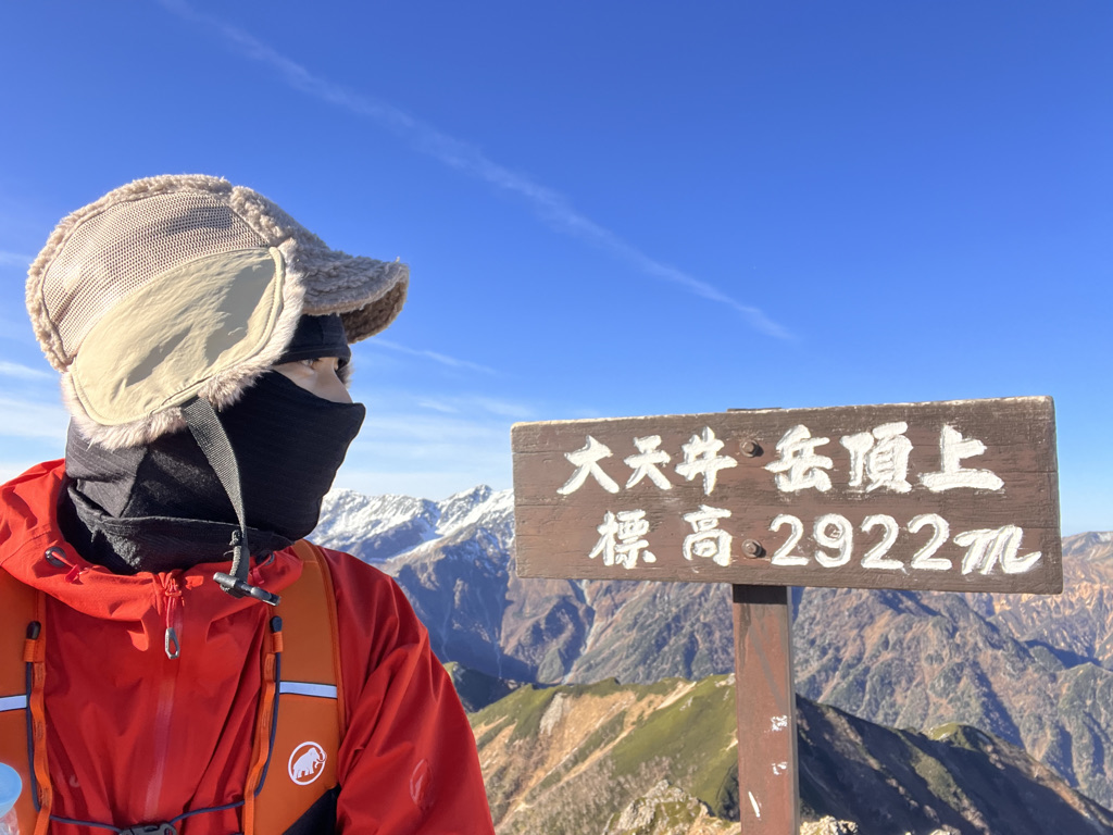 8時20分、大天井岳に到着した。山頂付近には雪があり、チェンスパを装着してのアタックだった。静寂の中で広がる景色を独り占めする贅沢。大天荘では小屋じまいの作業が進んでおり、冬が近づいていることを実感した。