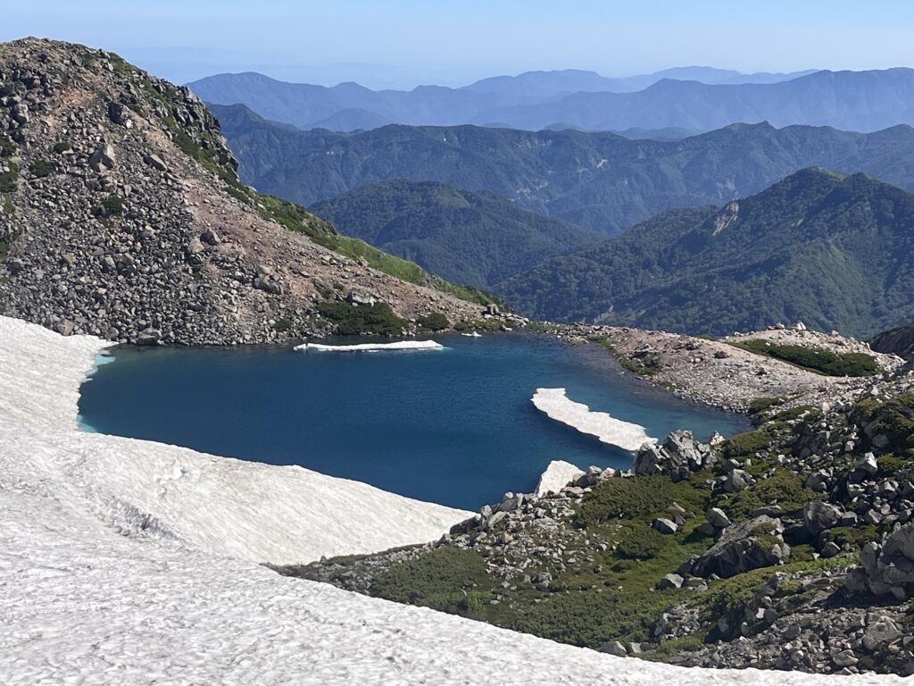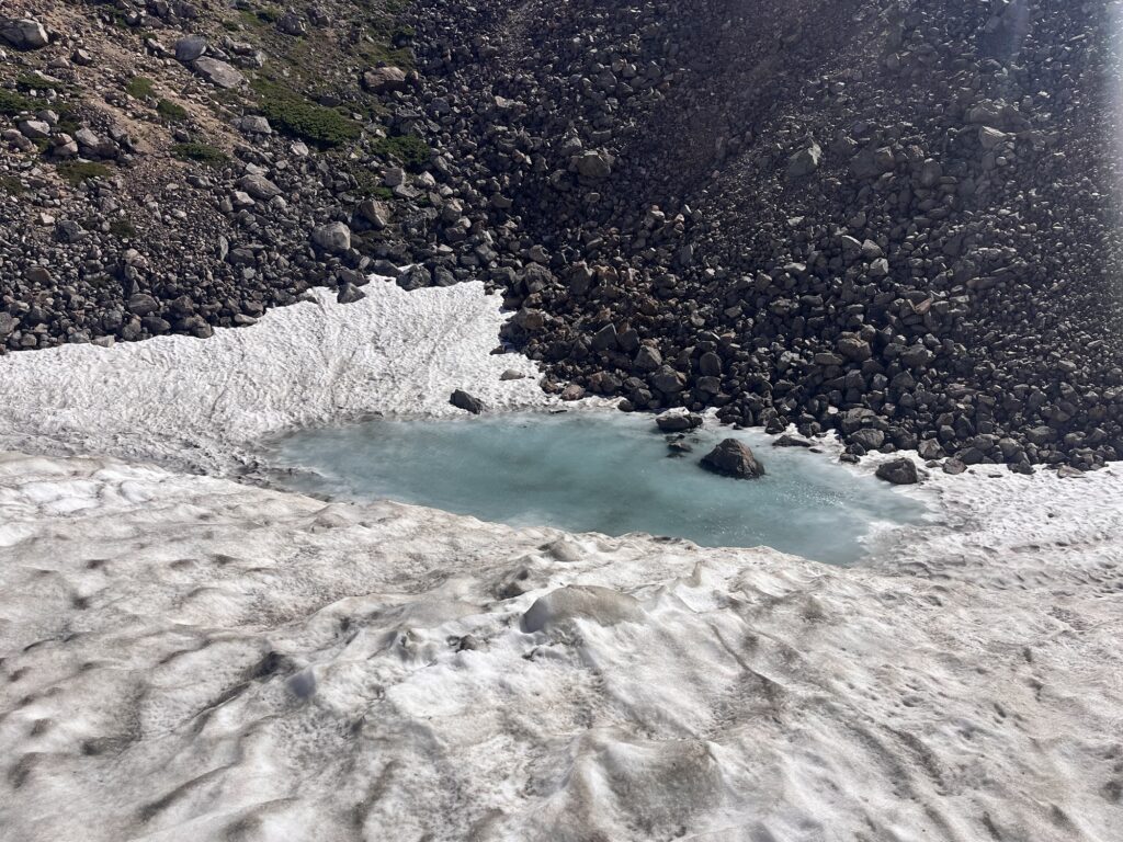 雪渓が残っていて、砂防新道で2箇所、御池巡りではさらに複数箇所、慎重に雪の上を歩いた。