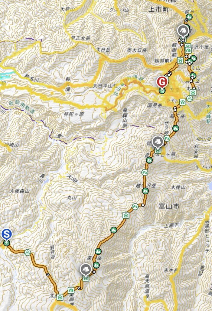 そうなると配分は決まってくる。折立は開門時間があり、初日で五色ヶ原まで抜けるのは現実的ではない。前夜インでナイトハイクという選択もあるが、初日から無理をすると後に響くので取らない。となれば、五色ヶ原の手前で1泊。稜線上の薬師岳山荘にする。ここは水が少ないと聞くが、稜線の夕・夜・朝の景色が楽しみだ。